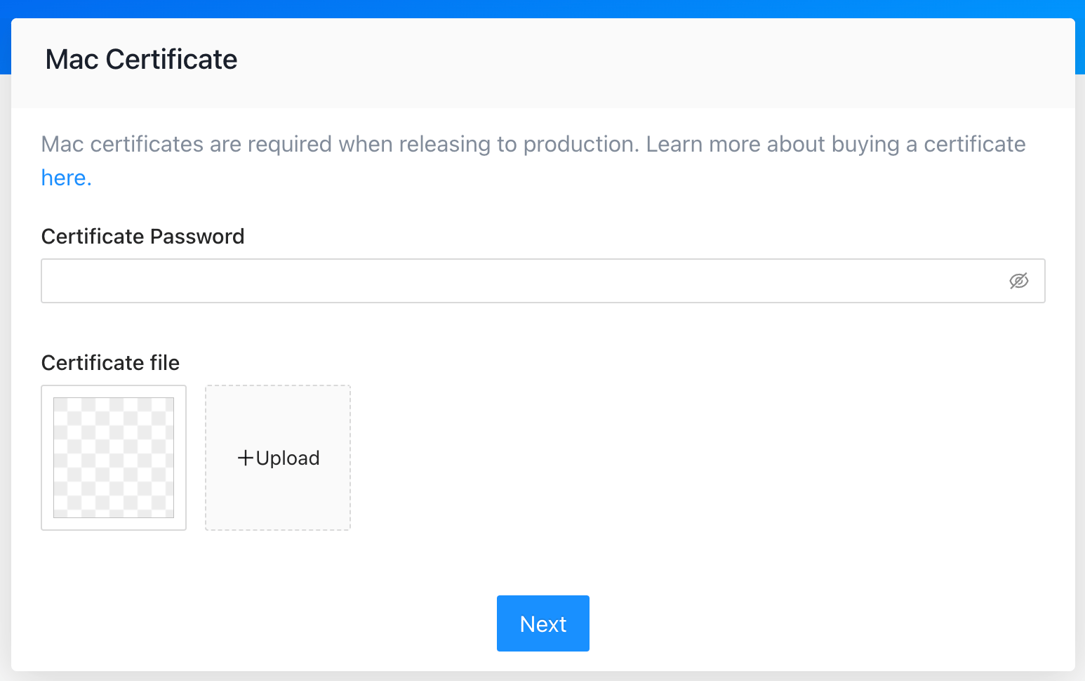 Adding a certificate for Mac apps is an involved process that involves multiple toolchains. We'll list the set of steps below, but feel free to contact us at [email protected] if you're feeling overwhelmed: